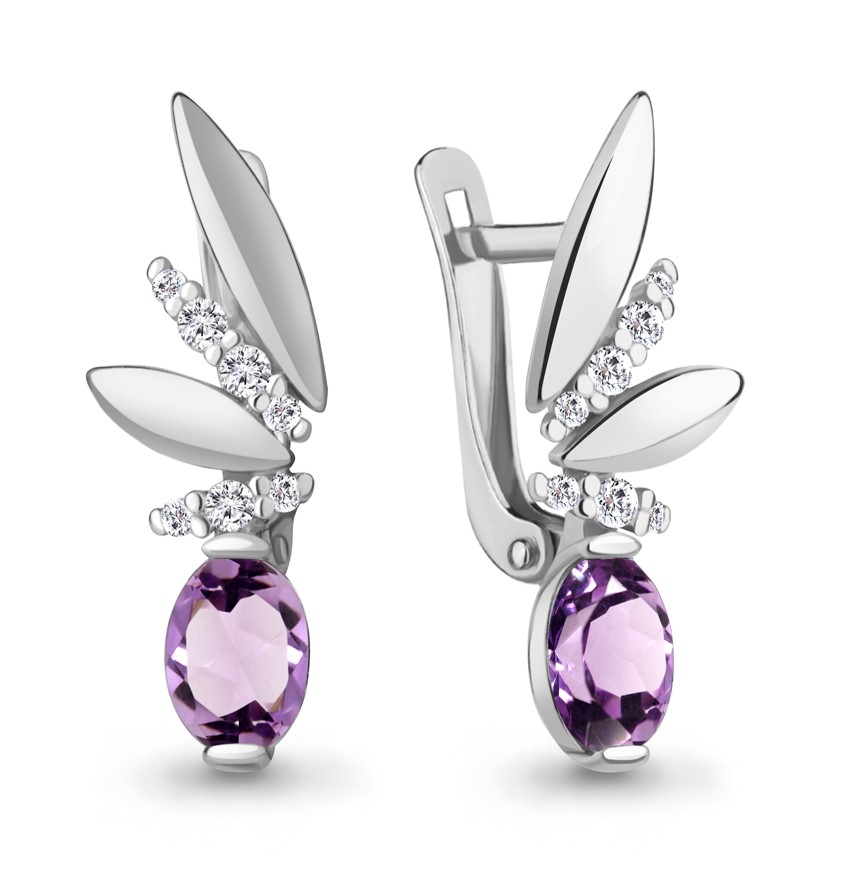 Серьги из серебра 925 пробы с аметистами и фианитами