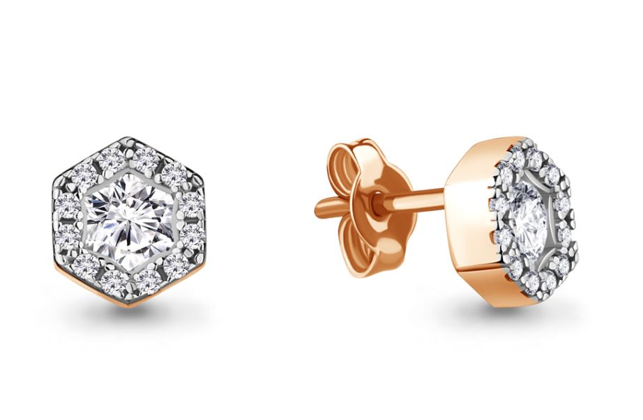 Серьги пусеты из серебра 925 пробы с позолотой, с фианитами