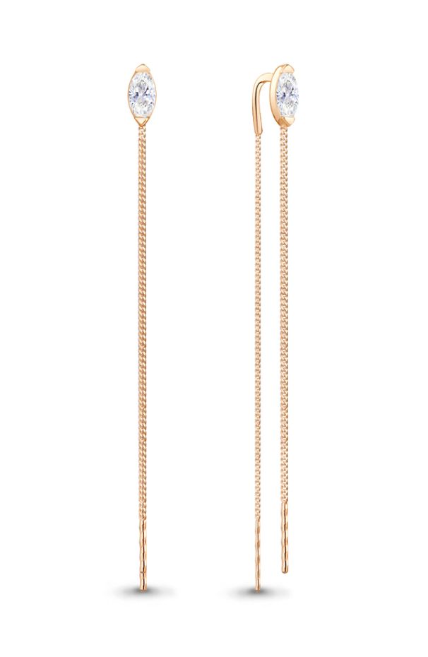 Серьги продевки из серебра 925 пробы с позолотой, с фианитами