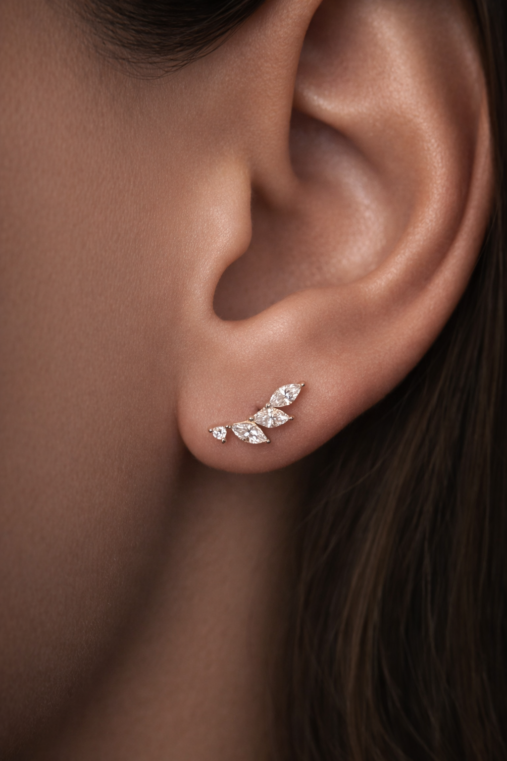 Серьги пусеты из золота 585 пробы с фианитами