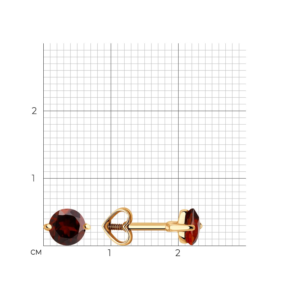 Серьги пусеты из золота 585 пробы с гранатом