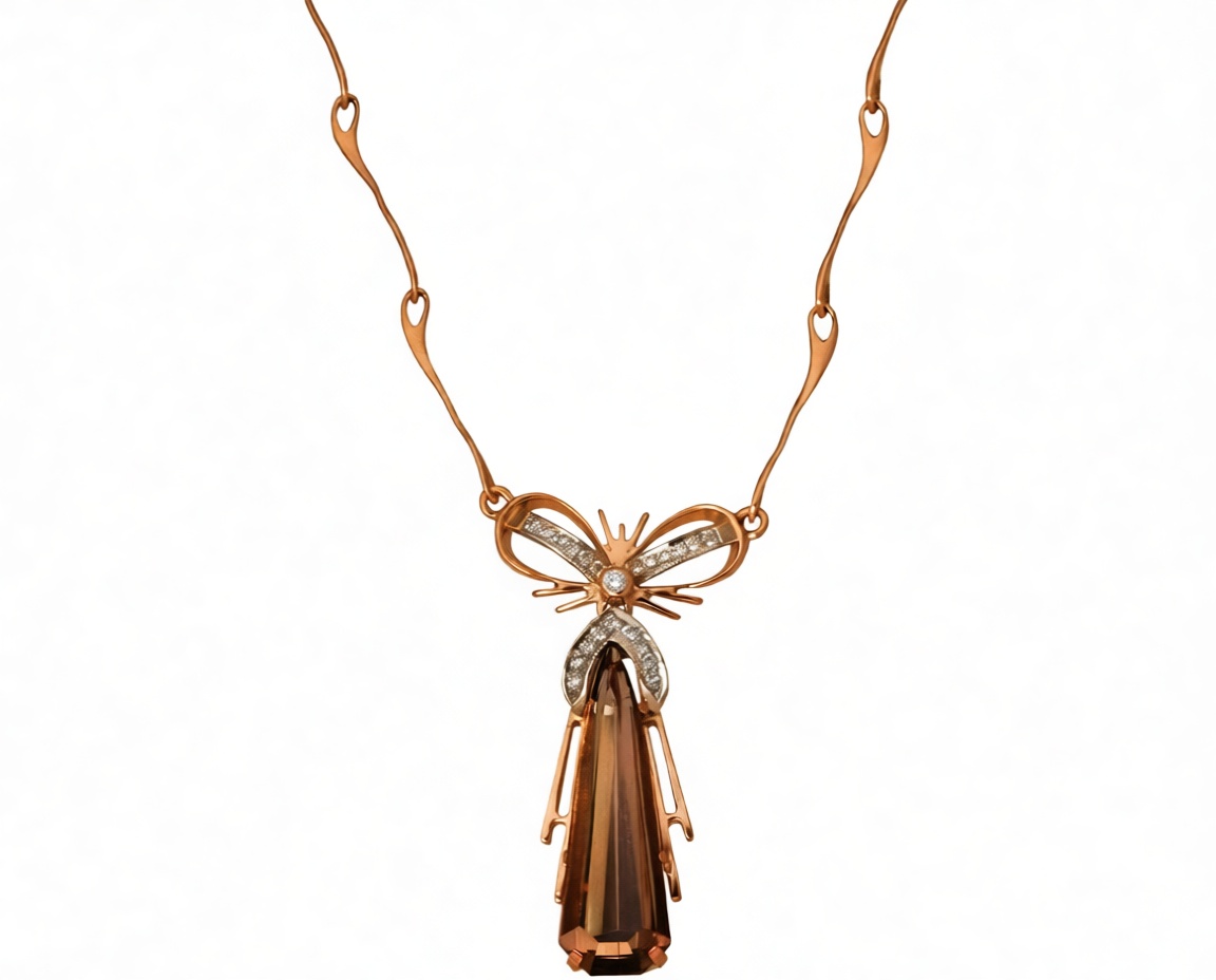 Колье (585) раухтопаз, бриллиант