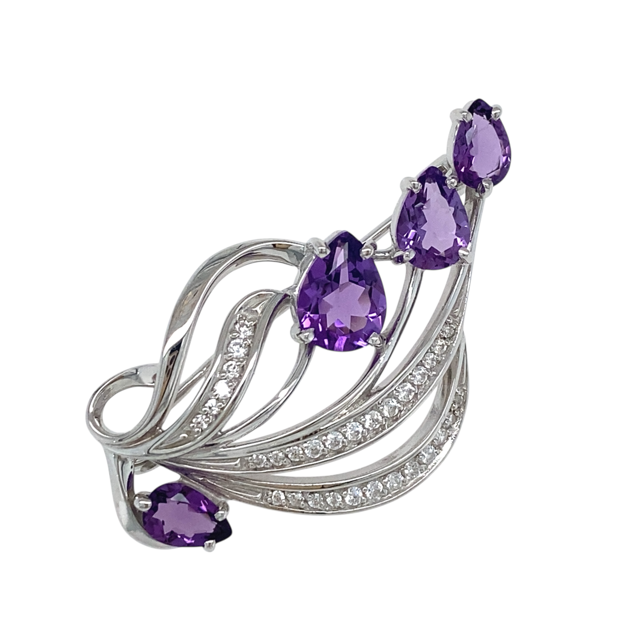 Брошь из серебра 925 пробы с аметистами и фианитами