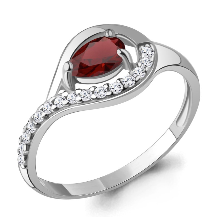 Кольцо из серебра 925 пробы с гранатом и фианитами