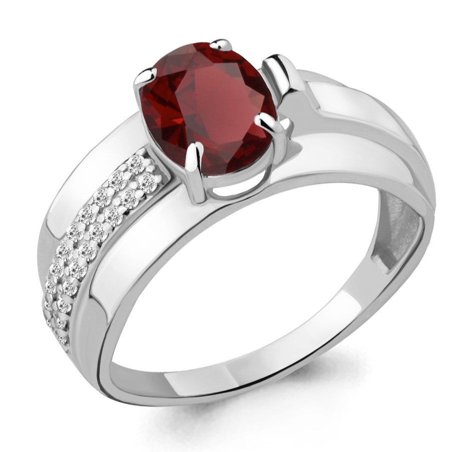 Кольцо из серебра 925 пробы с гранатом и фианитами