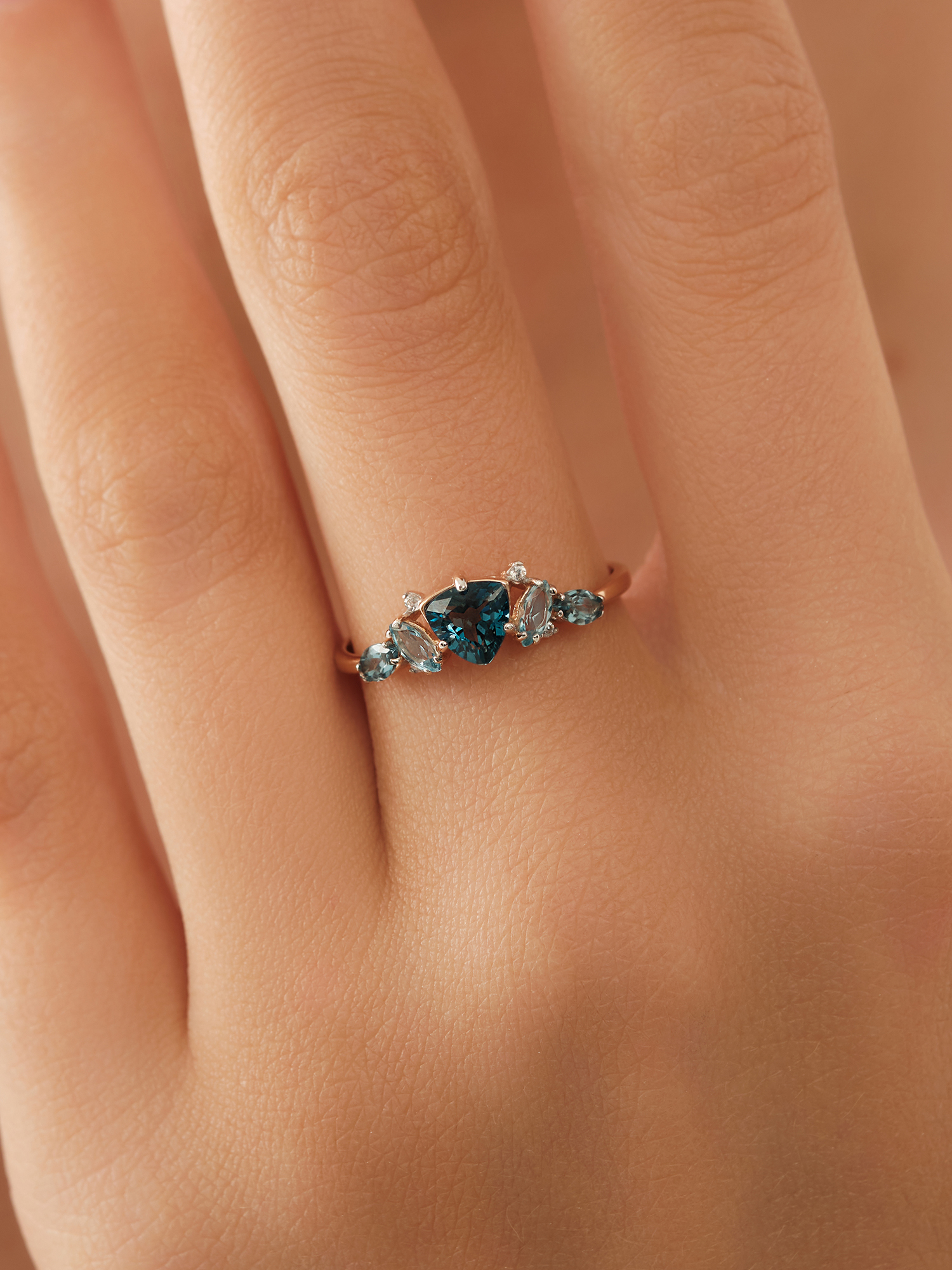 Кольцо из золота 585 пробы с топазами и топазом London Blue