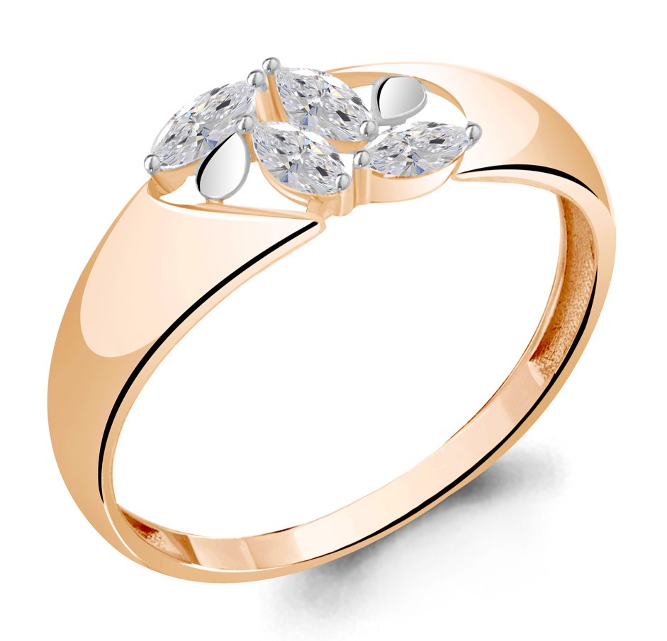 Кольцо из серебра 925 пробы с позолотой, с фианитами