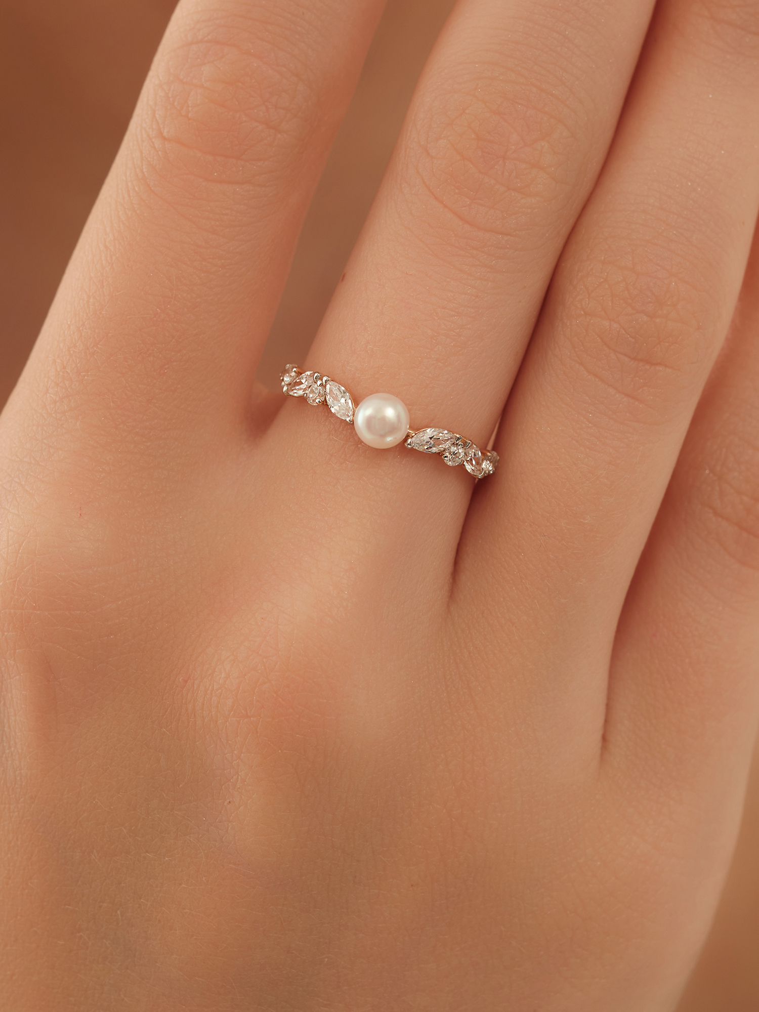 Кольцо из золота 585 пробы с жемчугом и фианитами