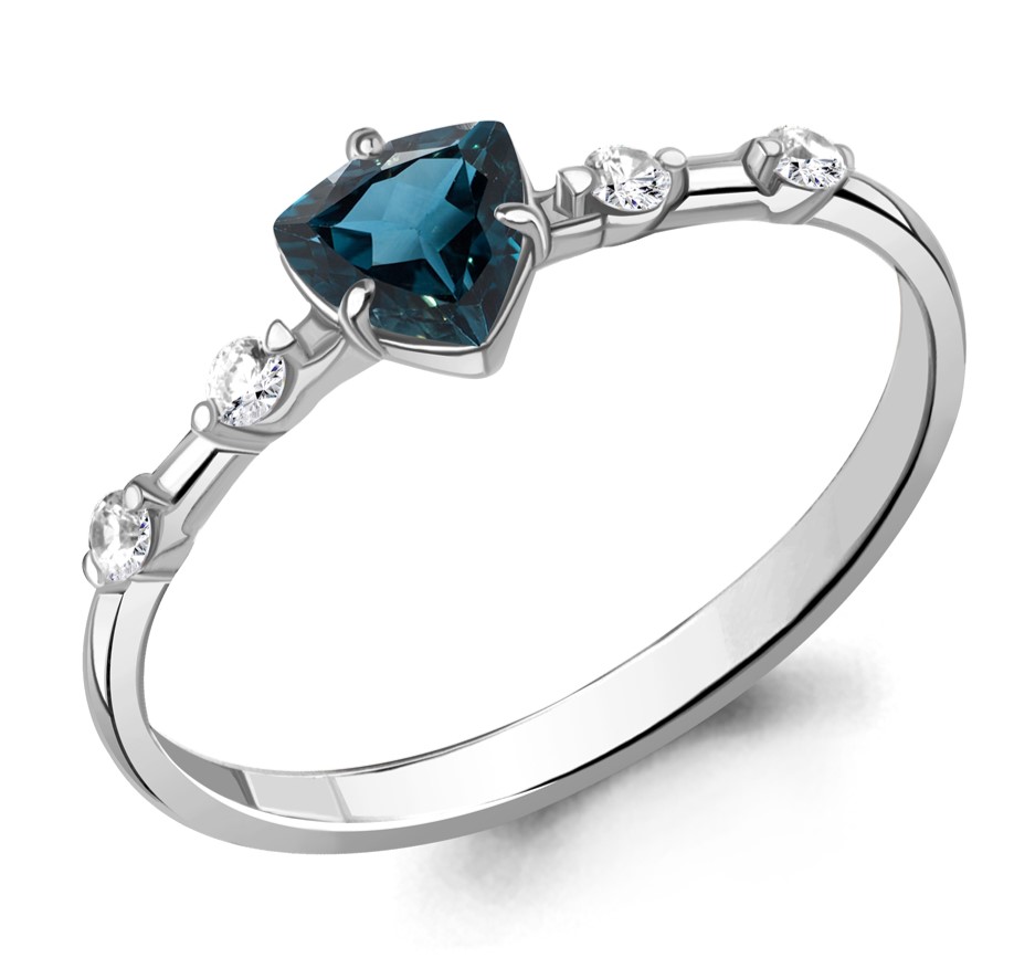 Кольцо из серебра 925 пробы с топазом London Blue и фианитами