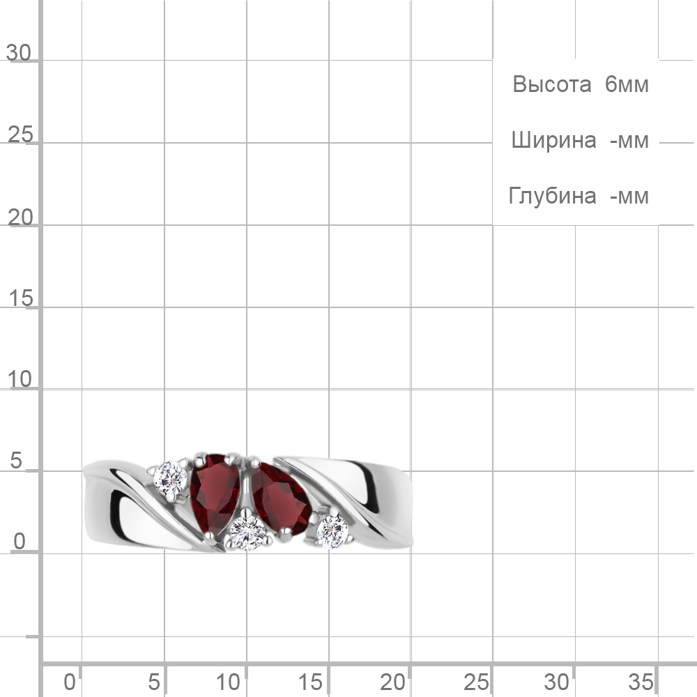 Кольцо из серебра 925 пробы с гранатом и фианитами