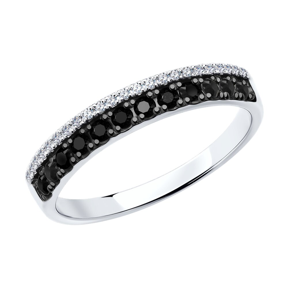 Кольцо из белого золота 585 пробы с белыми и черными бриллиантами