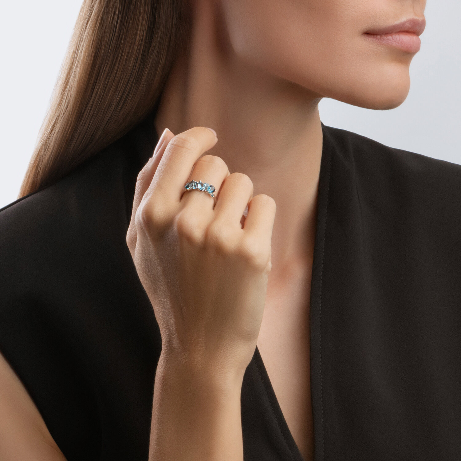 Кольцо из белого золота 585 пробы с топазами, топазами London Blue и фианитами