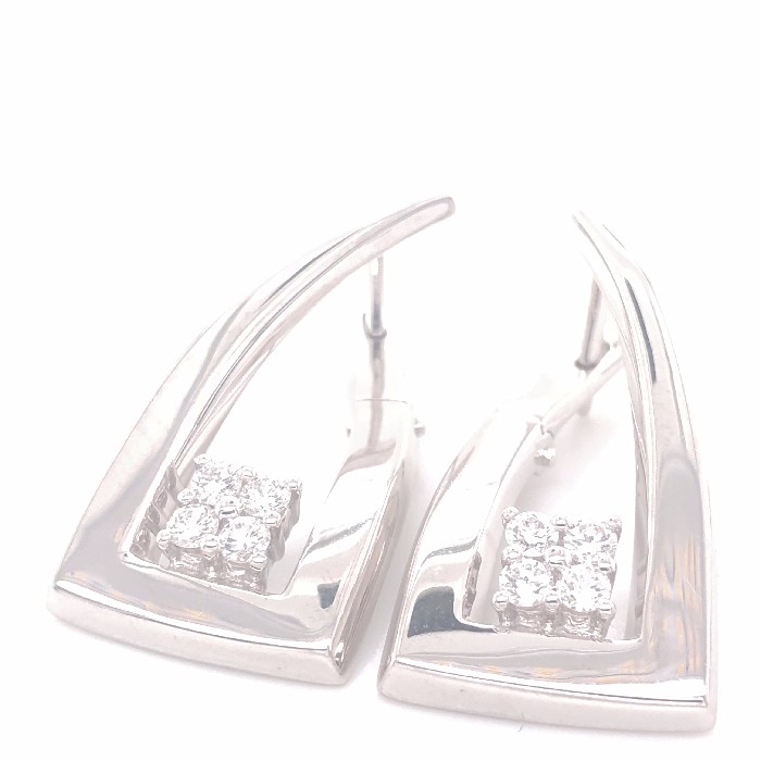 Строгость линий в этих серьгах сглаживается бриллиантами классической огранки, сверкающий блеск которых дополняется белым золотом. Сложный геометричный дизайн привлечет взгляды окружающих и расскажет о Вашем особом вкусе к ювелирным украшениям.