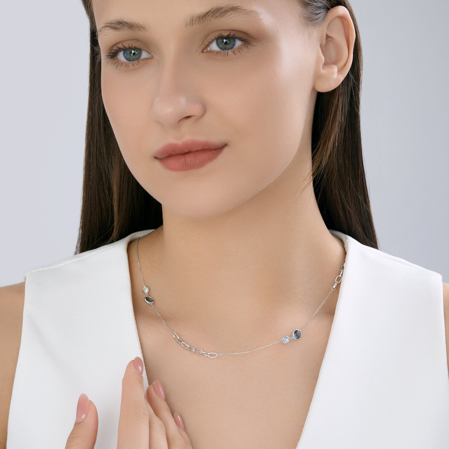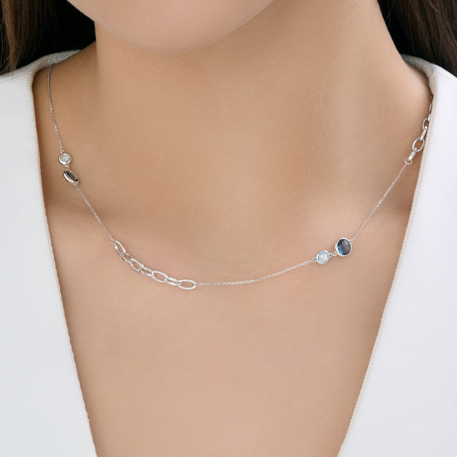 Колье (585 б) топаз-лондон, топаз