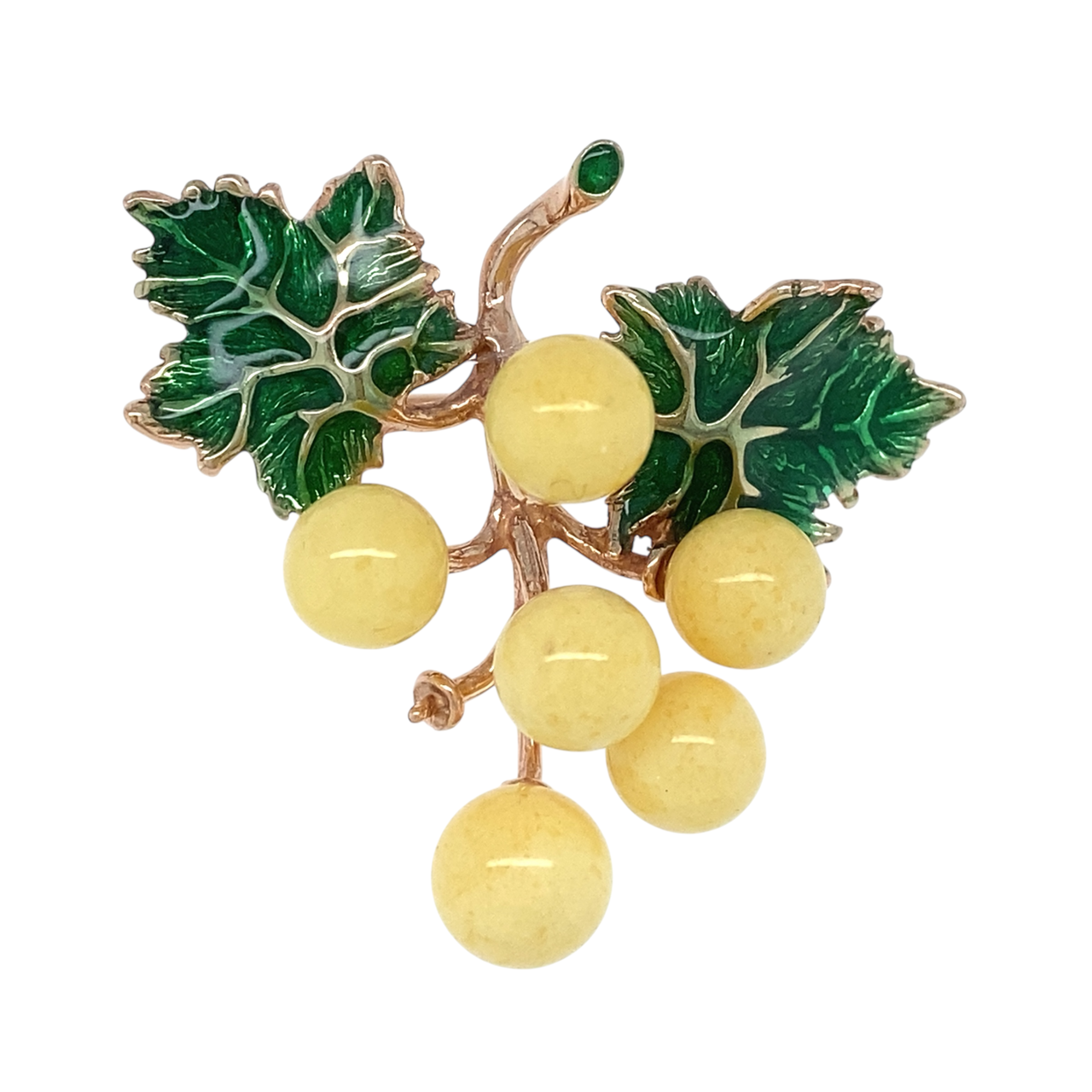Брошь (925 п) янтарь белый, эмаль
