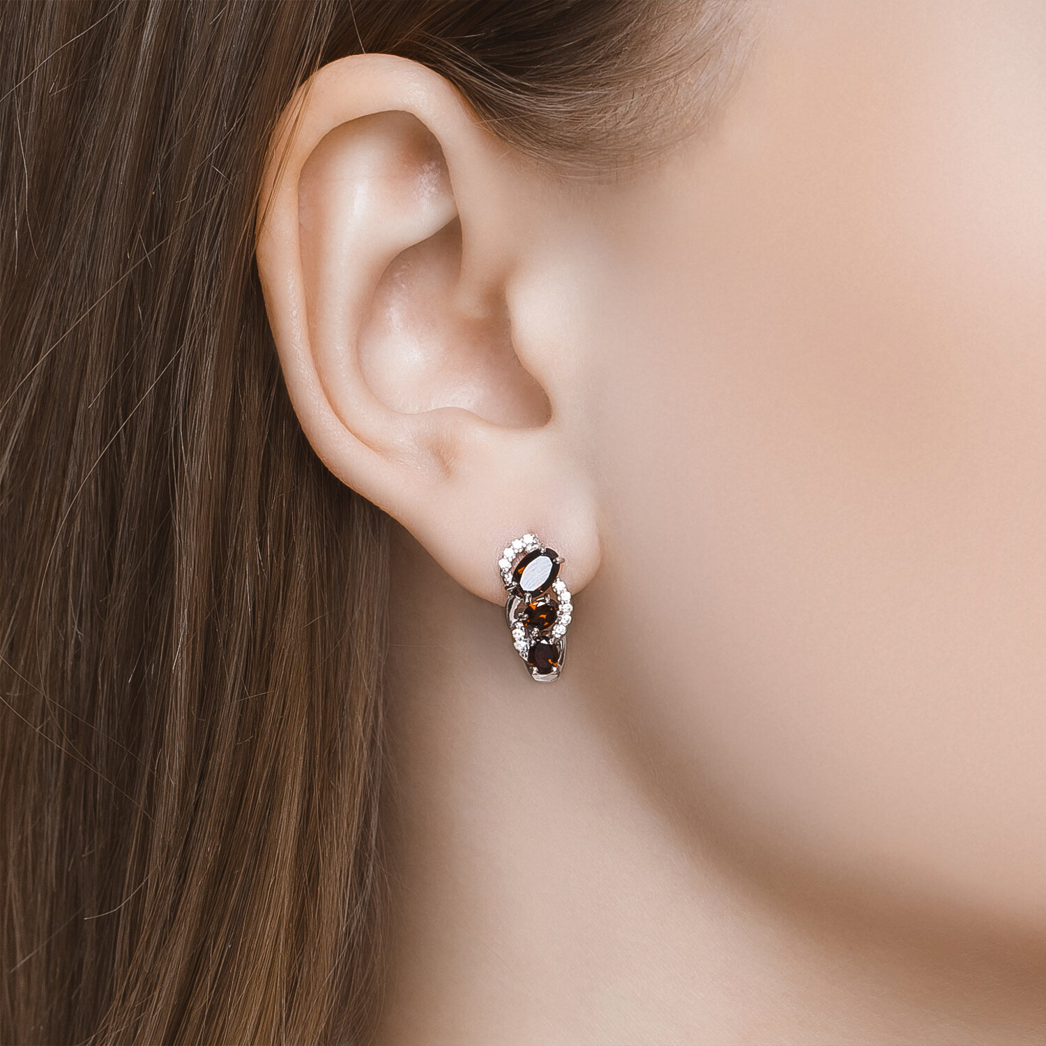 Изящные и женственные серьги в серебре с гранатами выделяются своей оригинальностью. Благодаря гранатам разного размера и обрамлению фианитов украшение приобретает свой стиль, который подойдет как для вечерних образов, так и для работы в офисе.