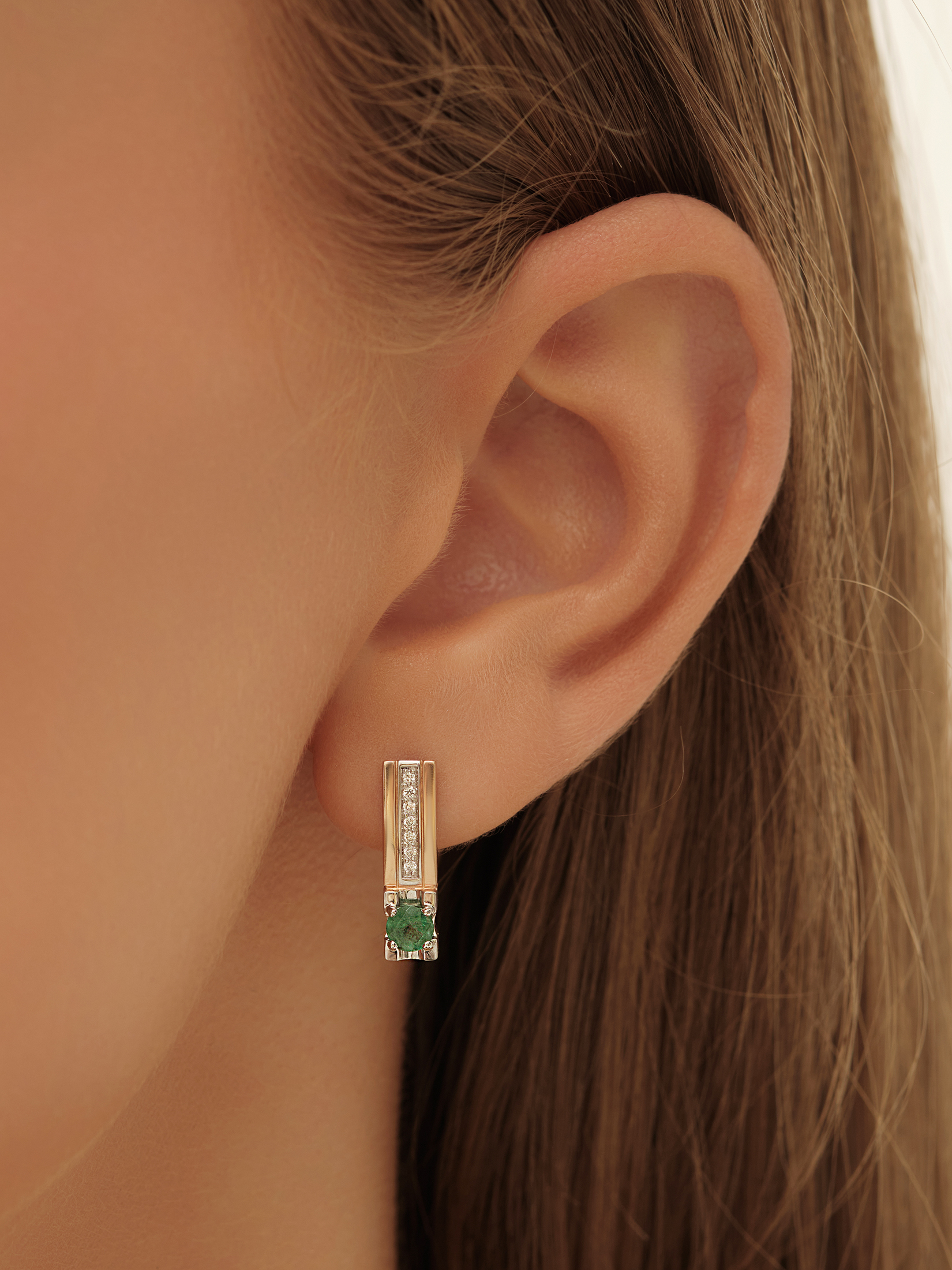 Серьги из золота 585 пробы с изумрудами и бриллиантами