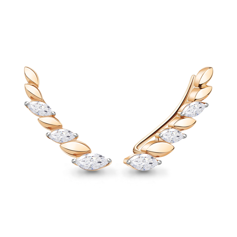 Серьги пины из серебра 925 пробы с позолотой, с фианитом
