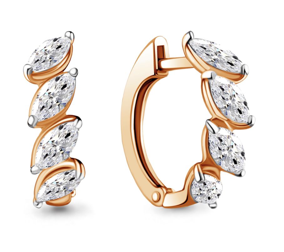 Серьги из серебра 925 пробы с позолотой, сфианитами