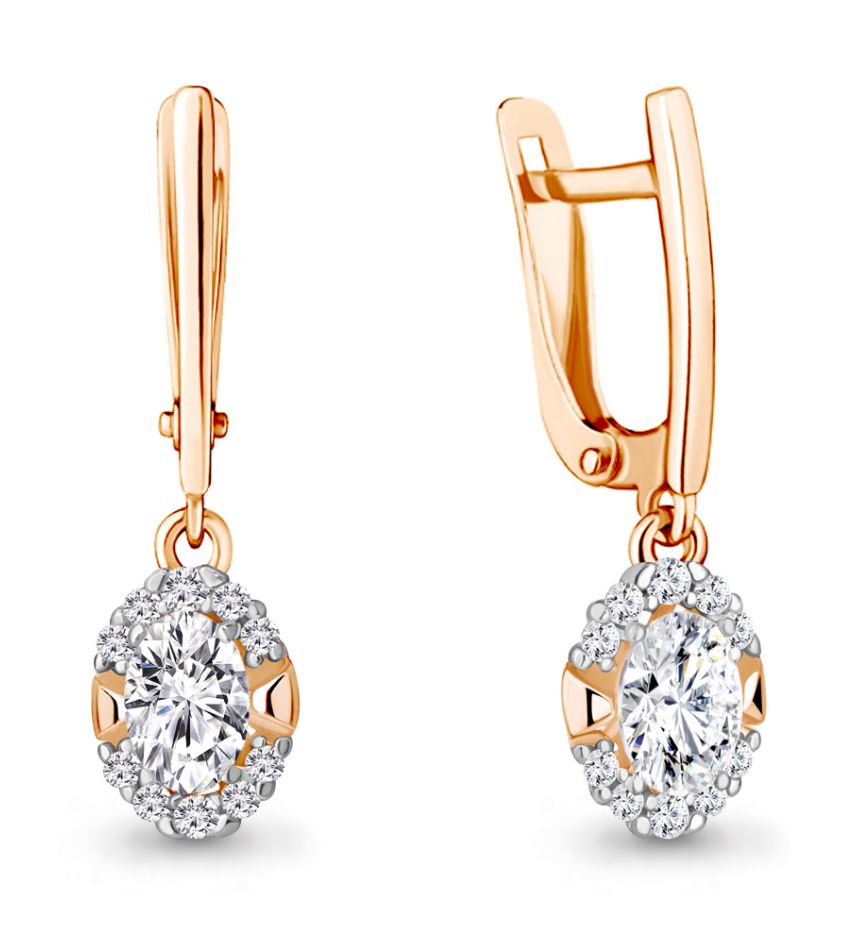 Серьги из серебра 925 пробы с позолотой, сфианитами
