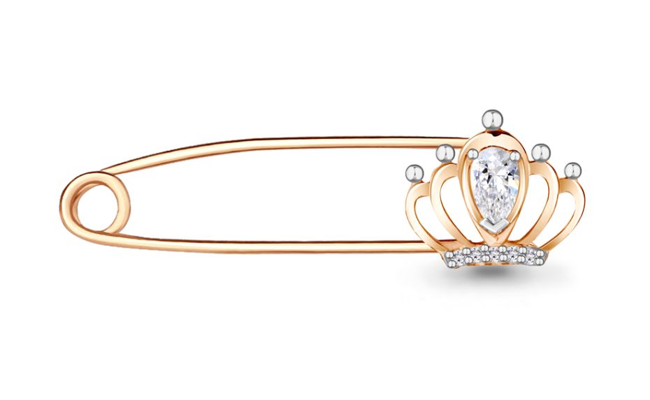 Булавка из серебра 925 про с позолотой, с фианитом