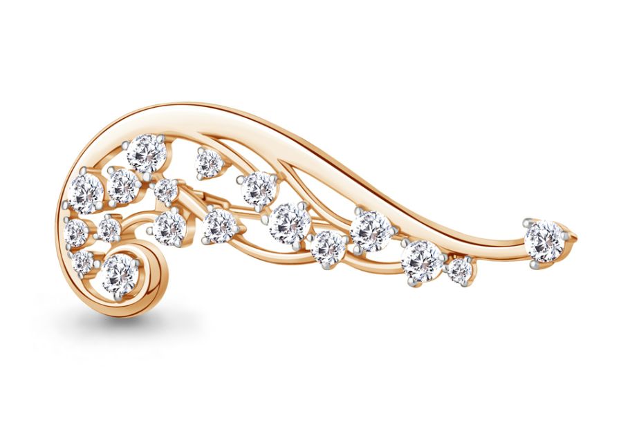 Брошь из серебра 925 пробы с позолотой, с фианитами