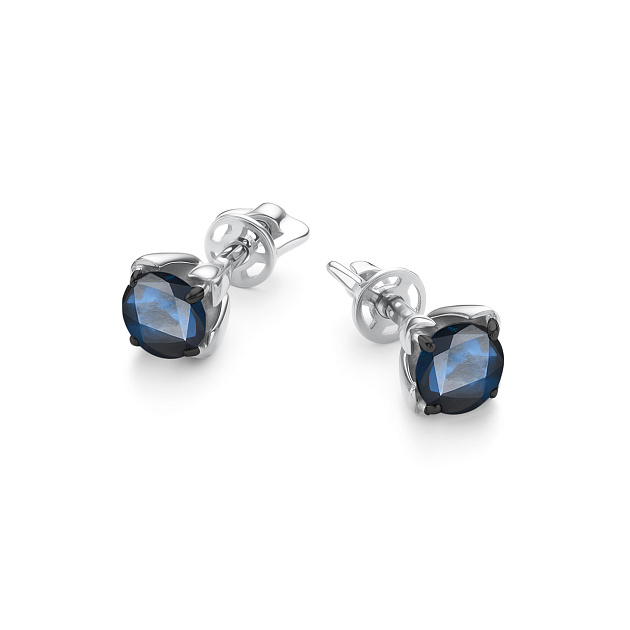 Серьги пусеты из белого золота 585 пробы с сапфирами