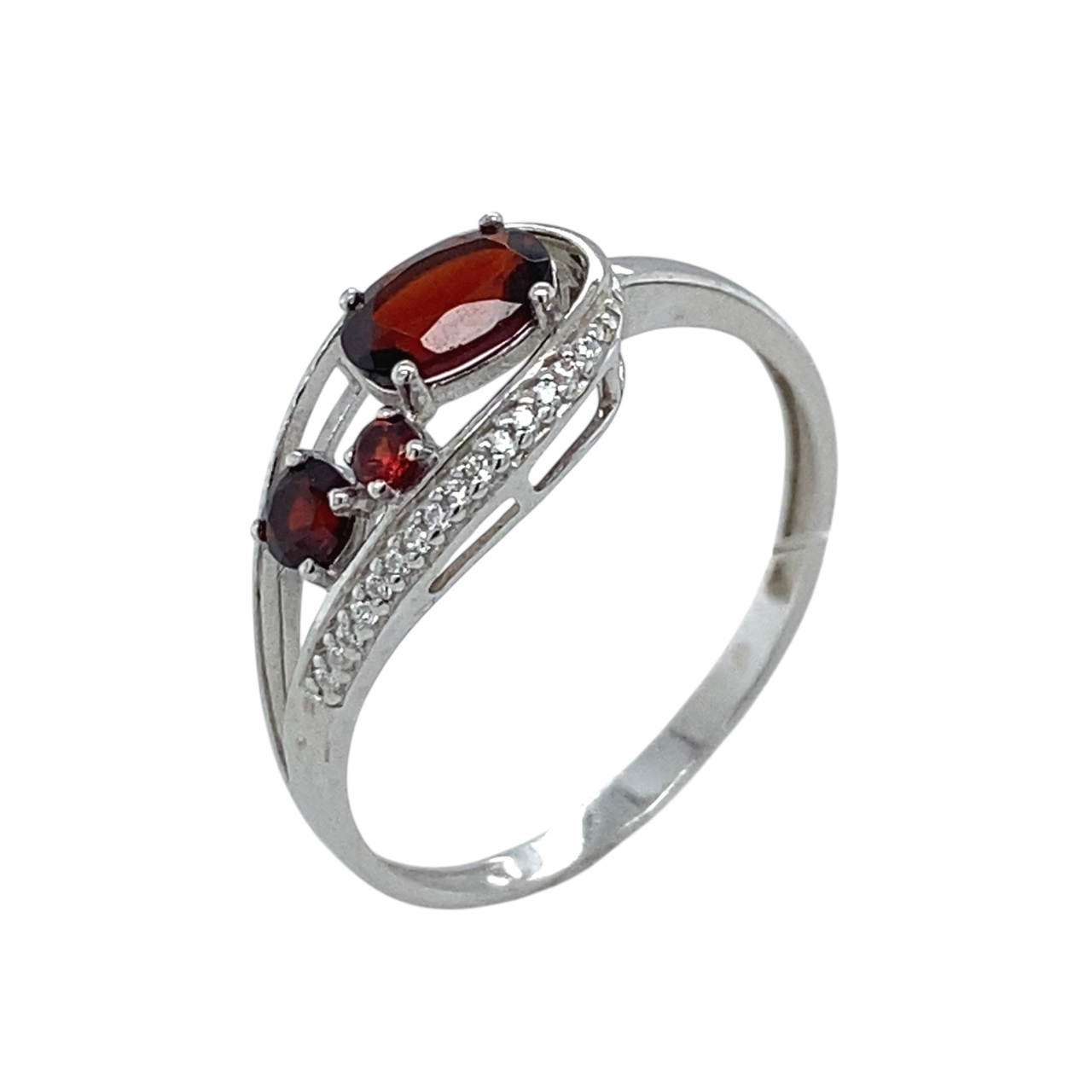 Кольцо из серебра 925 пробы с гранатом и фианитами