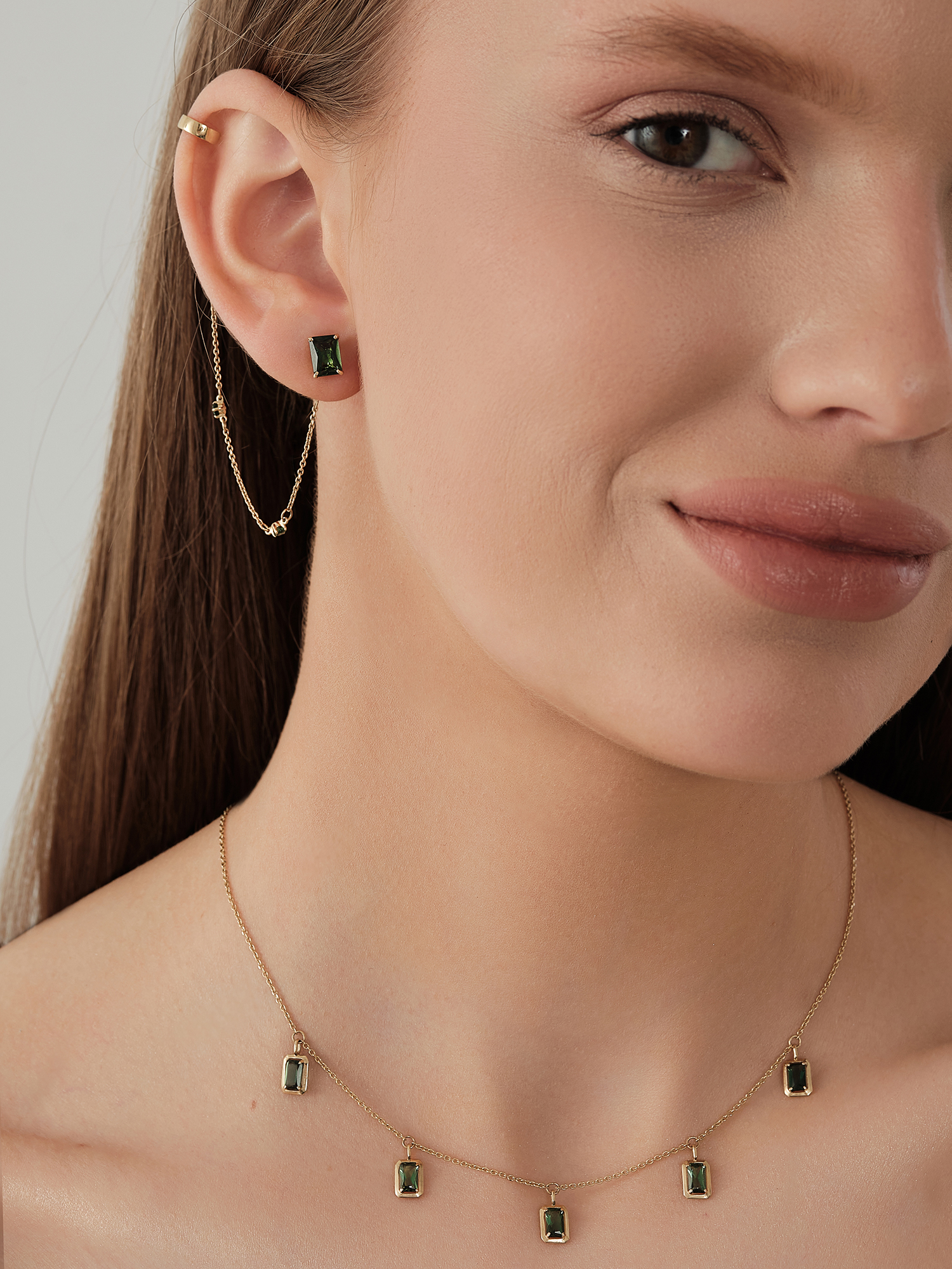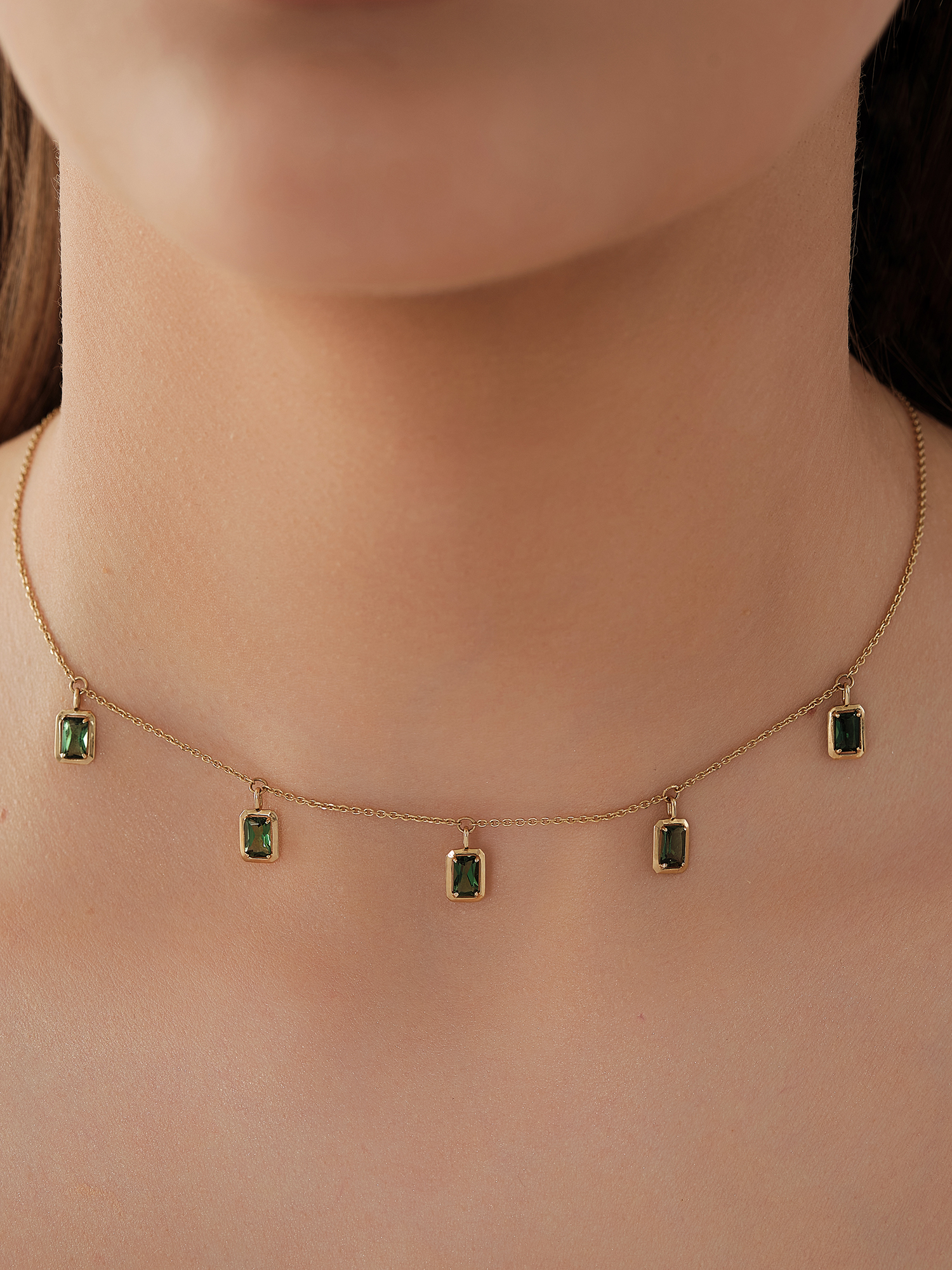 Колье из желтого золота 585 пробы с искусственным турмалином