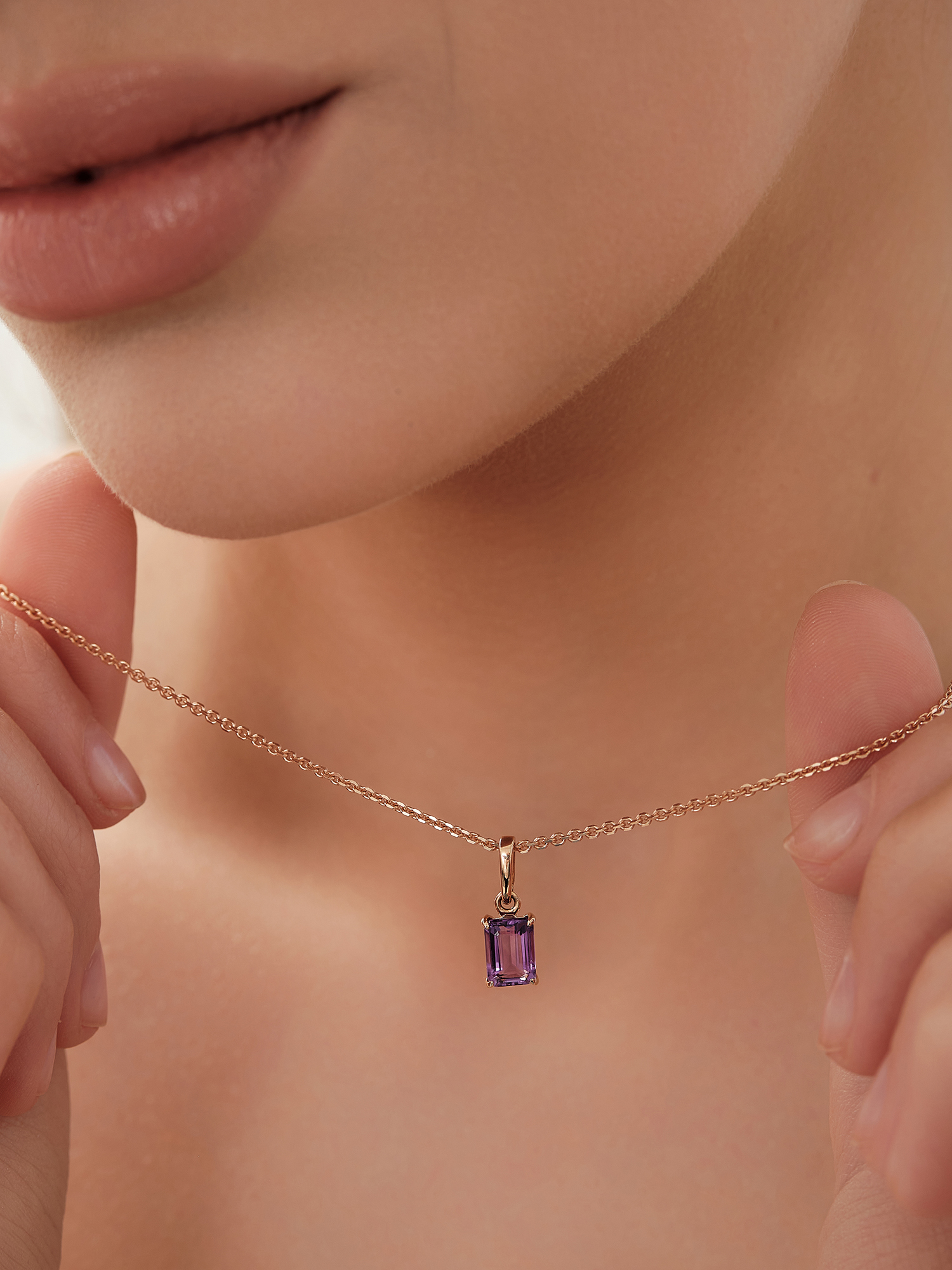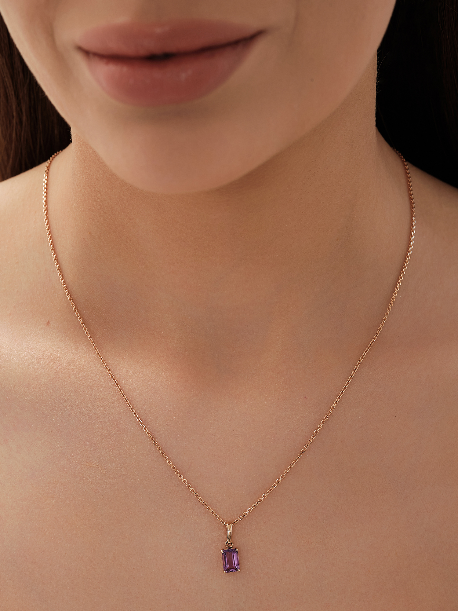 Золотая подвеска 585 пробы имеет вставку из аметиста в огранке октагон. Она отлично дополнит стильный сет из других украшений Amalfi или станет ключевым акцентом в Вашем луке, подчеркнув таинственность обладательницы своим сиреневым сиянием.