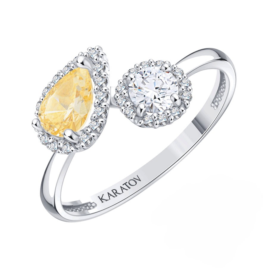 Кольцо из белого золота 585 пробы с цветными фианитами