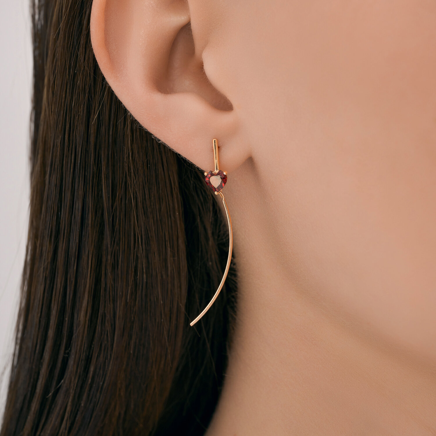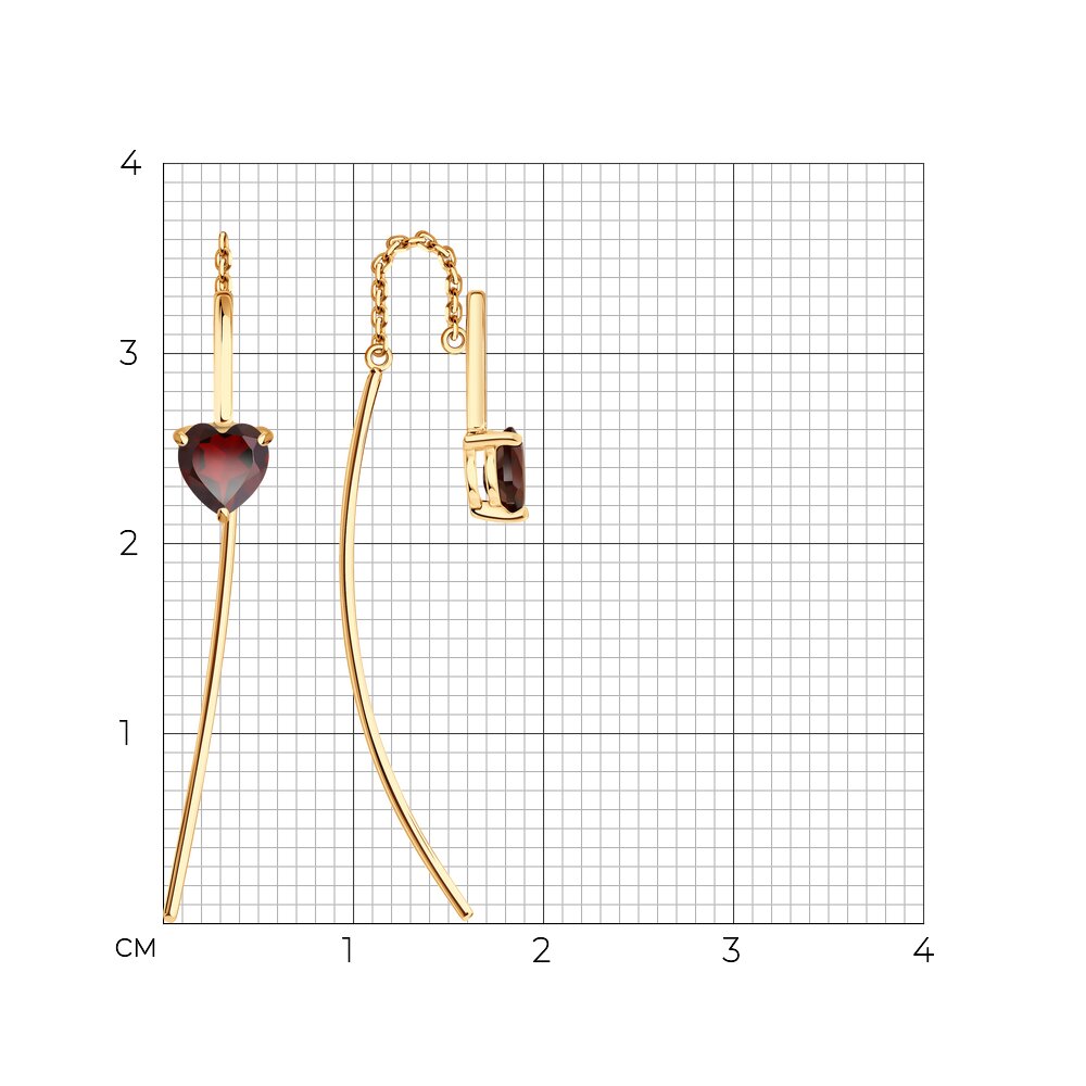 Серьги продевки из золота 585 пробы с гранатом