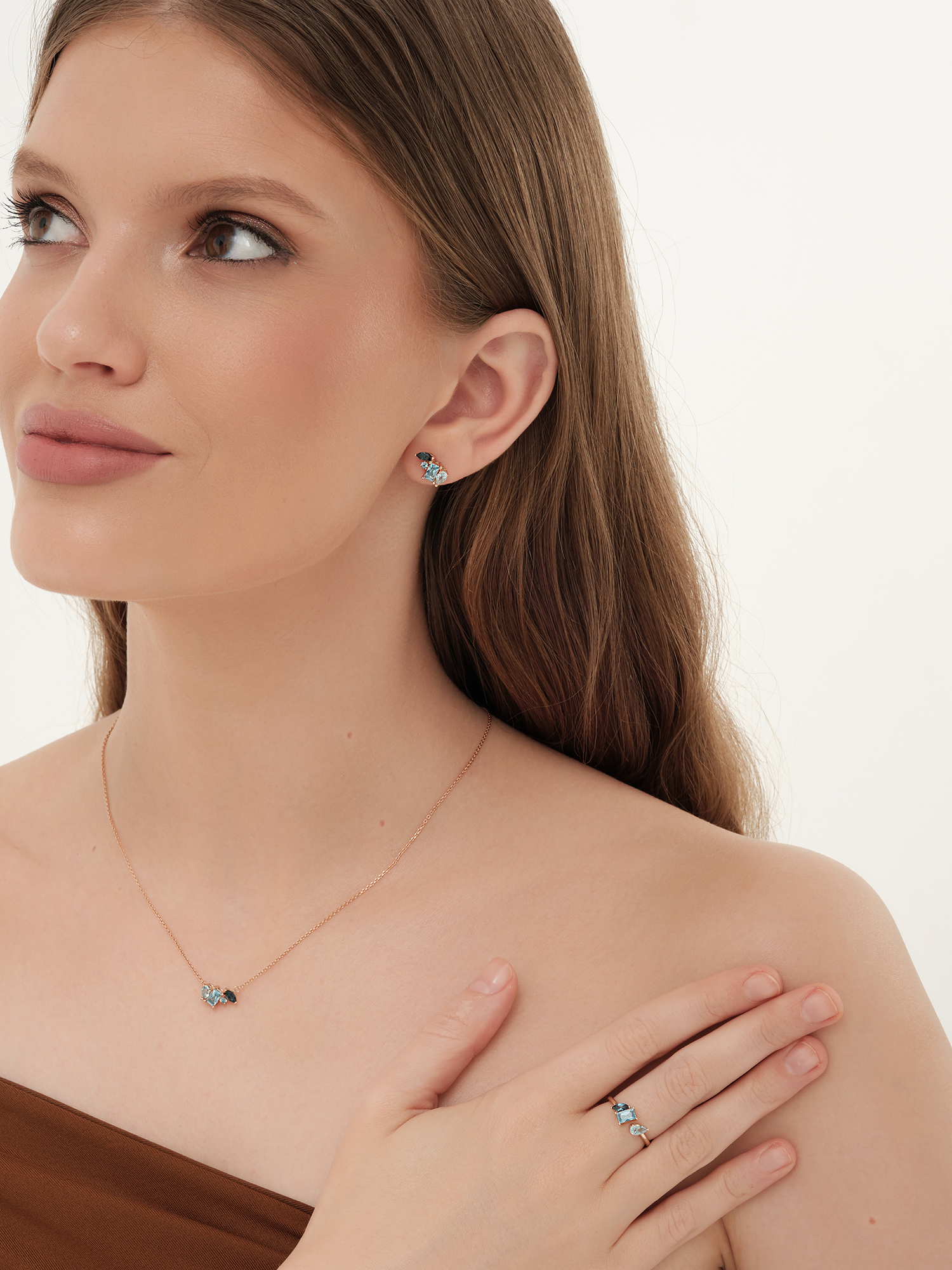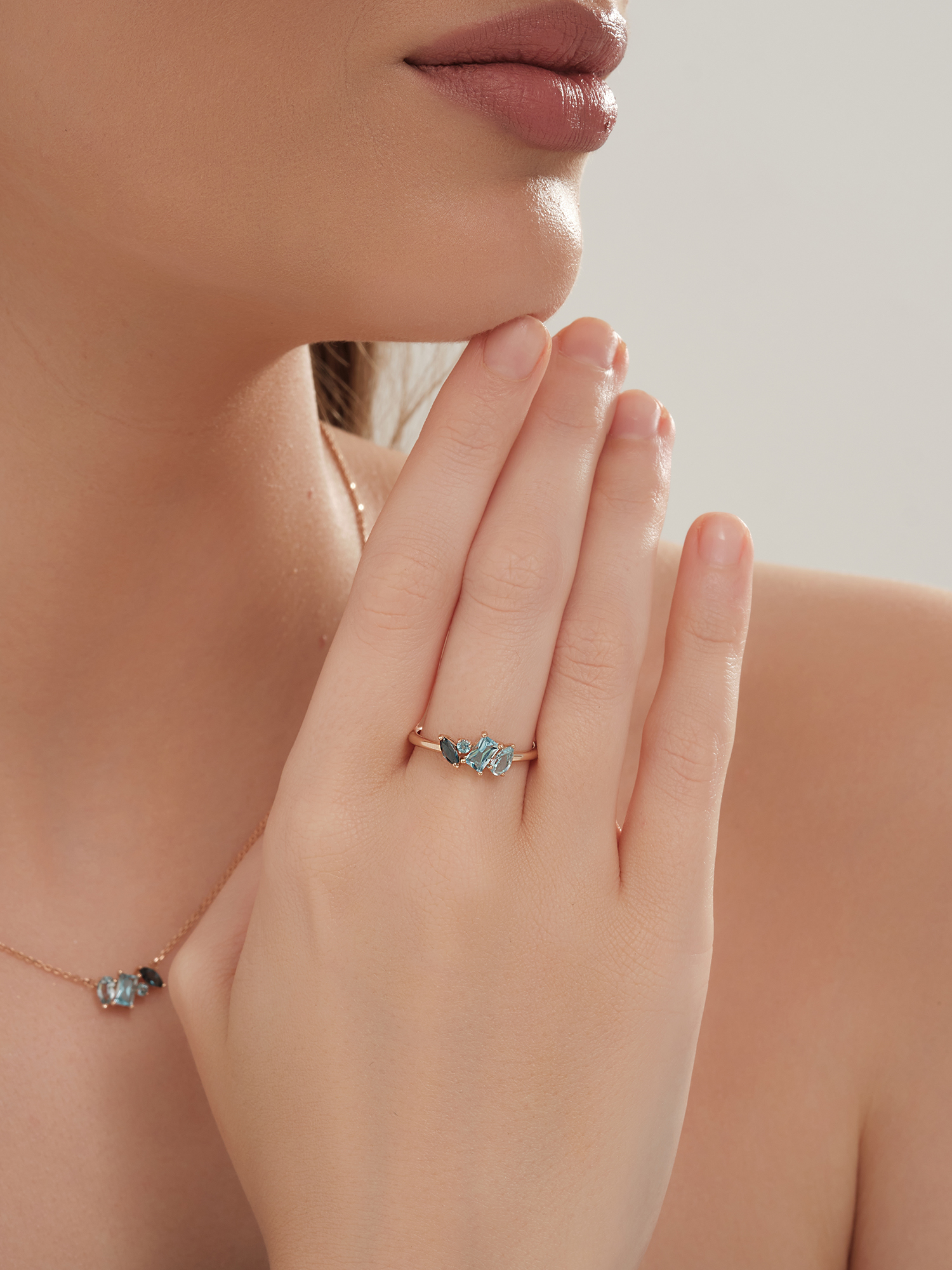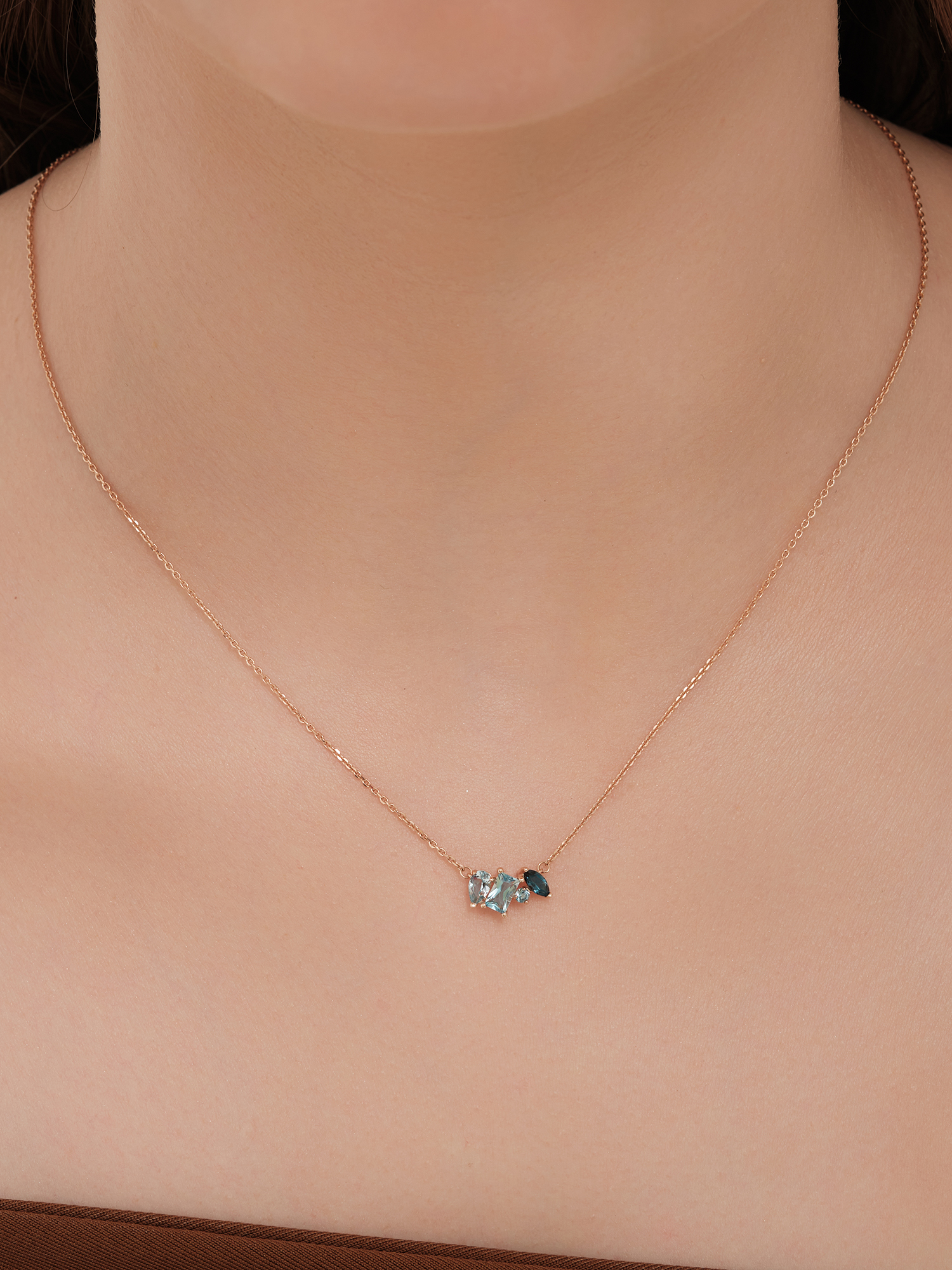 Колье из золота 585 пробы с топазами и топазом London Blue