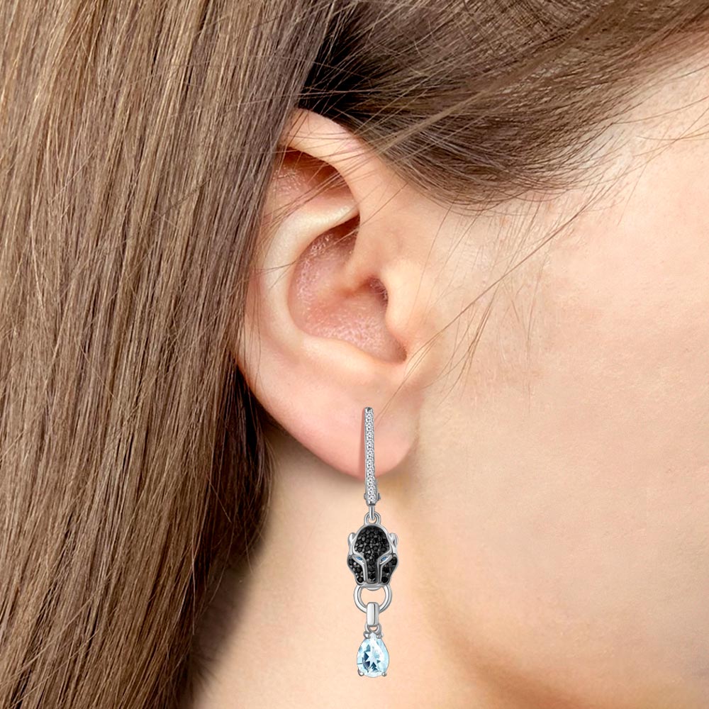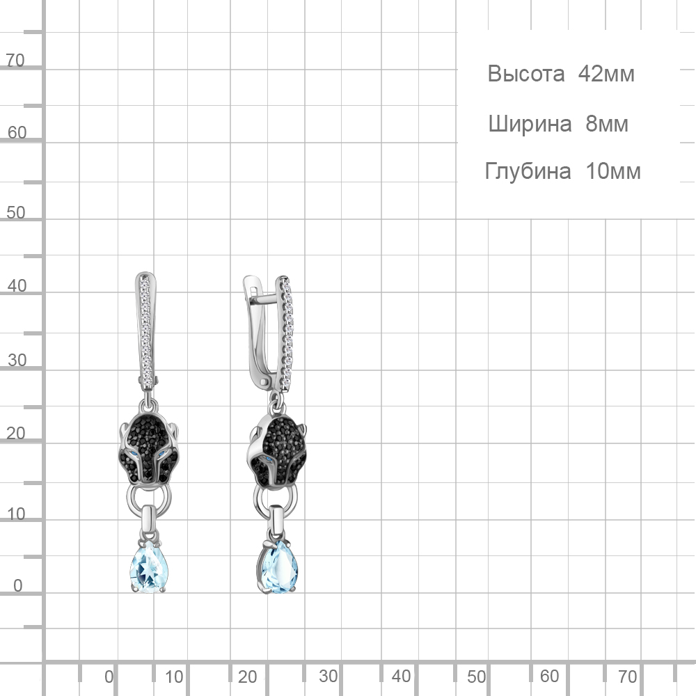 Серьги (925) топаз, топаз синт., кристалл, фианит