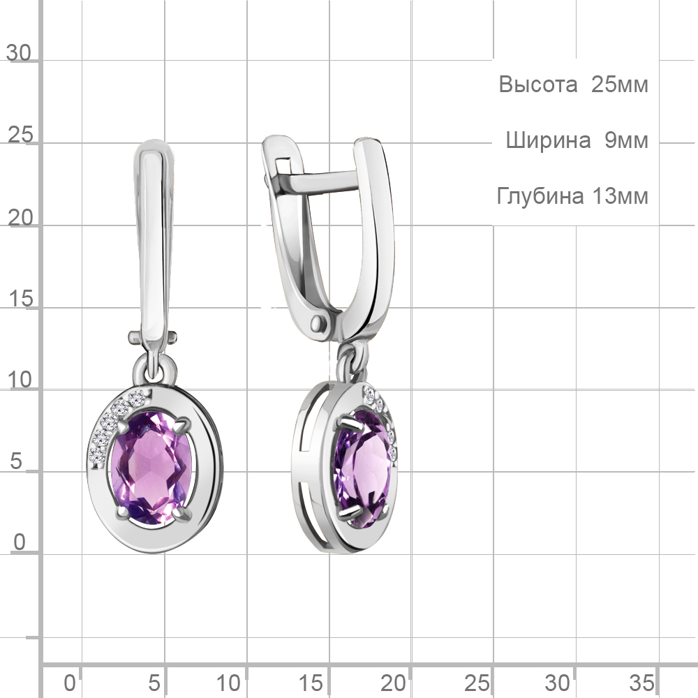 Серьги из серебра 925 пробы с аметистами и фианитами