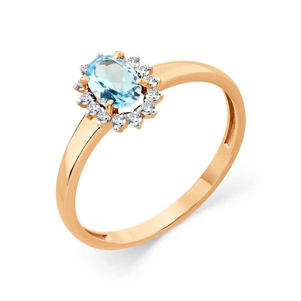 Кольцо из золота 585 пробы с топазом и финитами