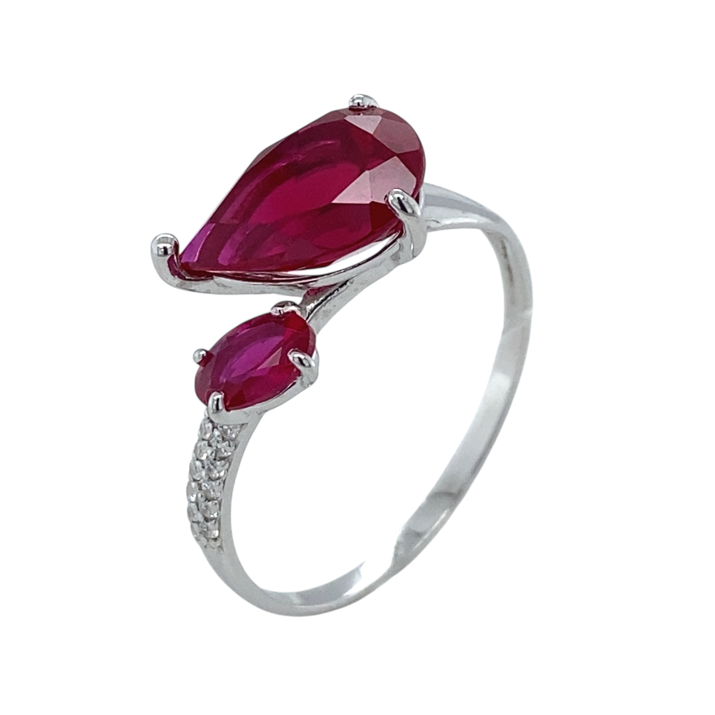 Кольцо из серебра 925 пробы с искусственным рубинами и фианитами