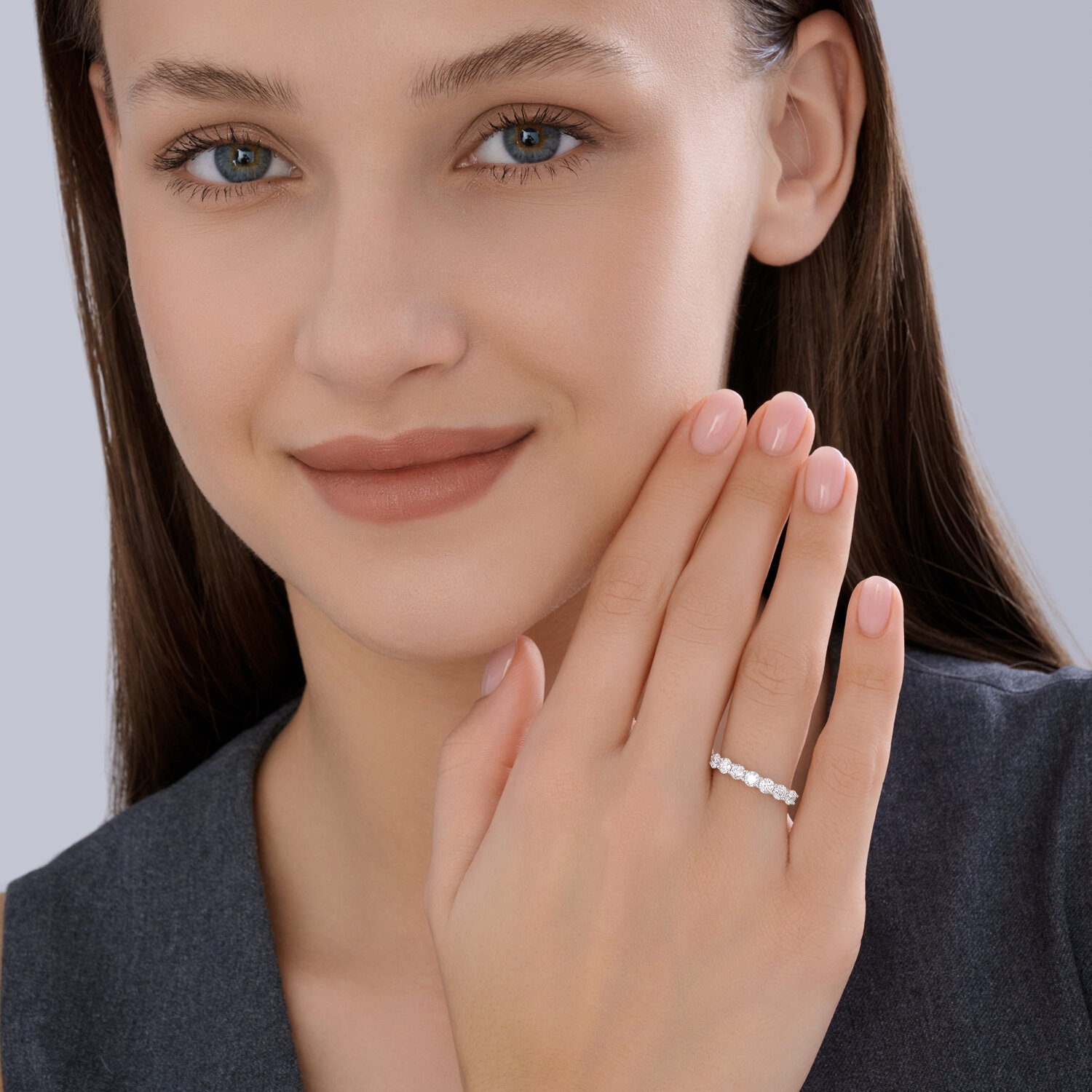 Кольцо из белого золота 585 пробы с выращенными бриллиантами