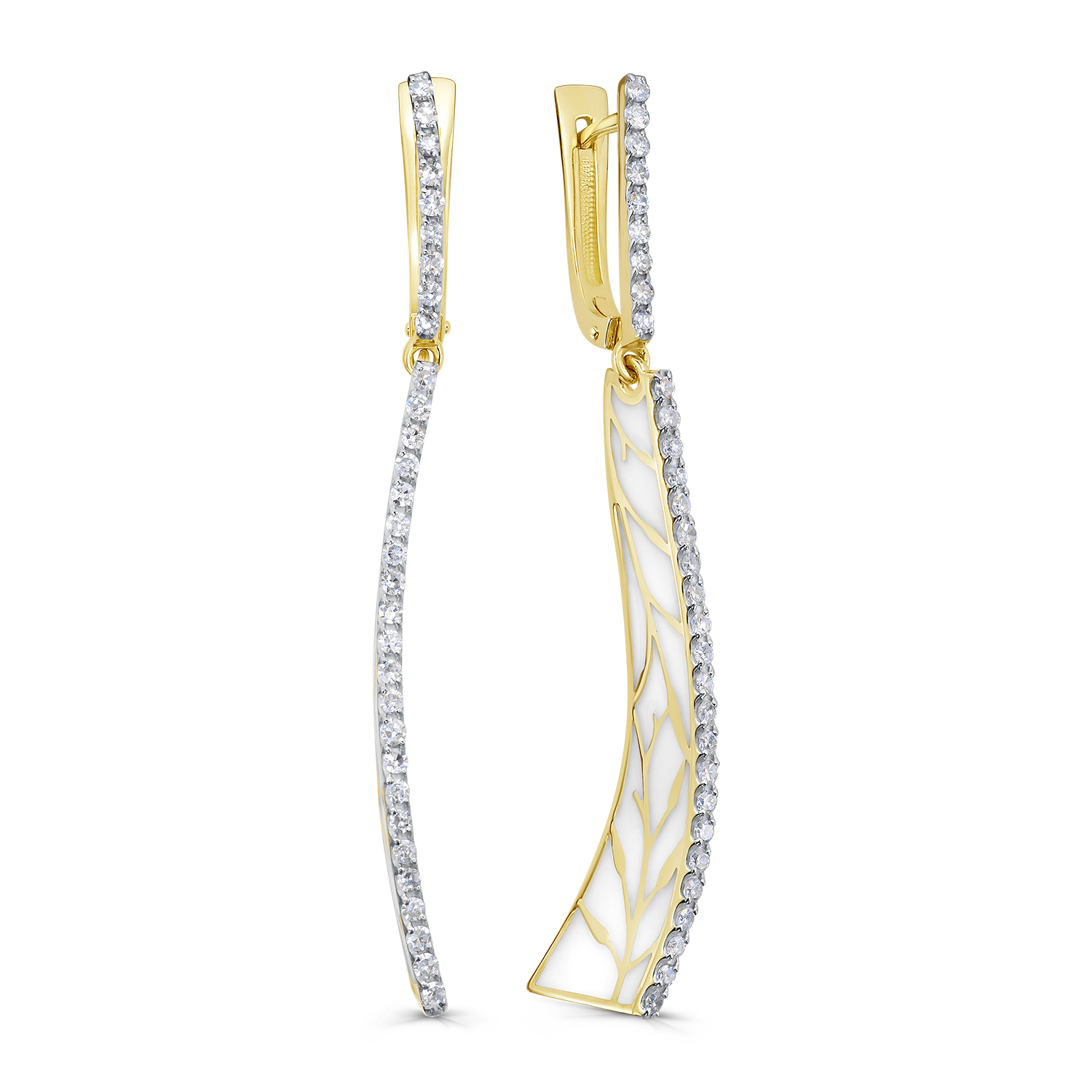Серьги из желтого золота 585 пробы с эмалью и бриллиантами