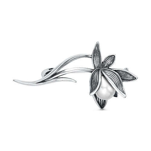 Брошь из серебра 925 пробы с искусственным жемчугом