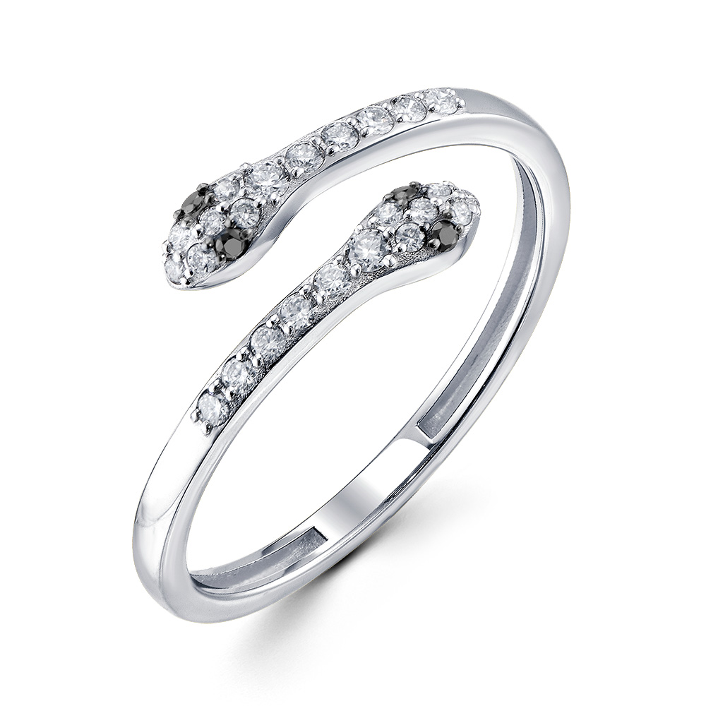 Кольцо из белого золота 585 пробы с белыми и черными бриллиантами