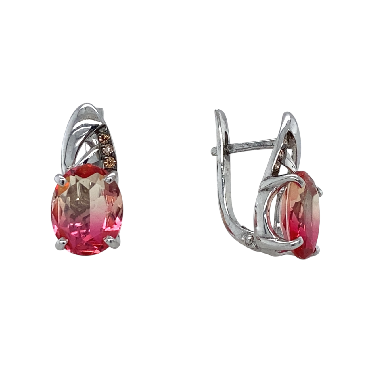 Серьги из серебра 925 пробы с искусственным турмалином и фианитами