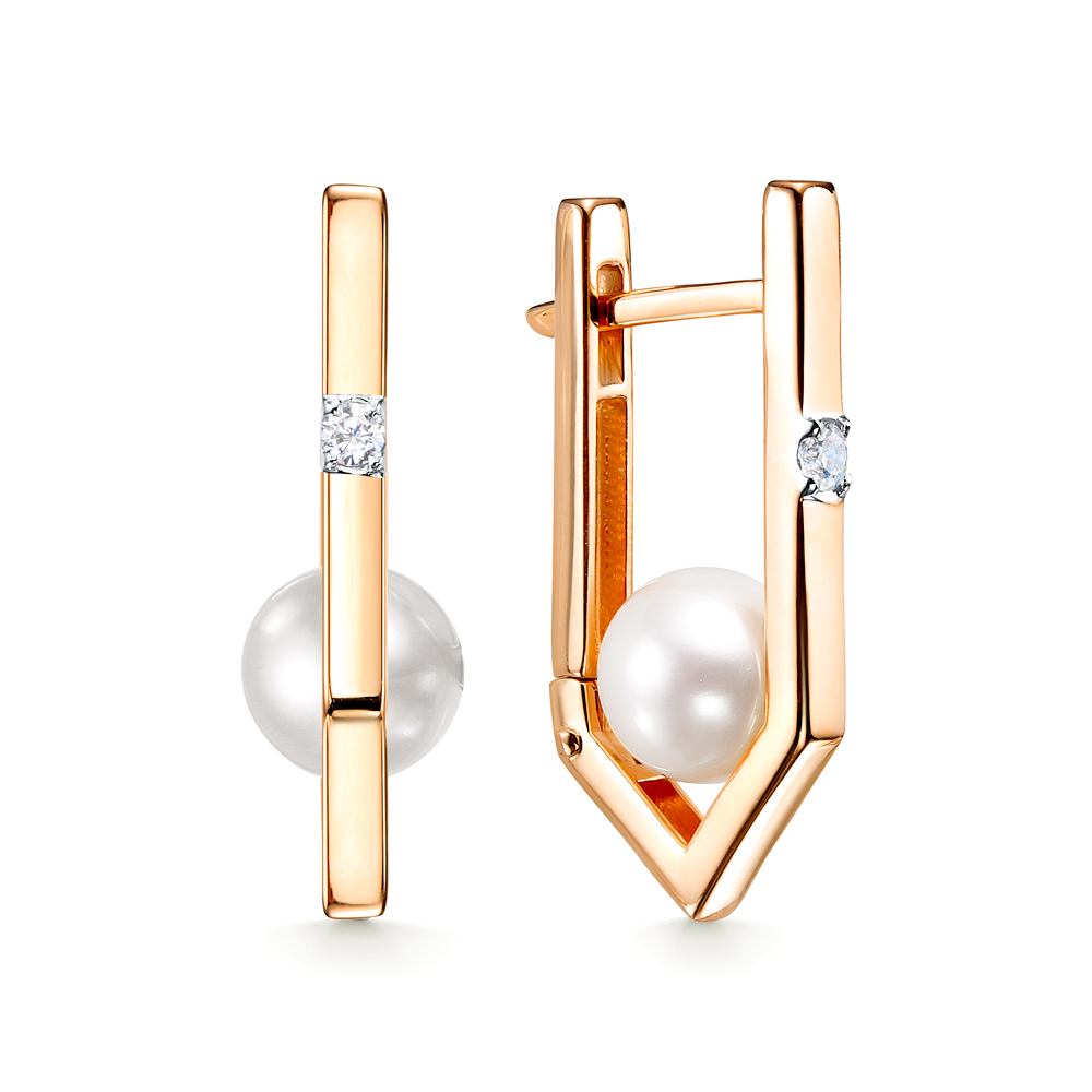 Серьги из золота 585 пробы с жемчугом и фианитами
