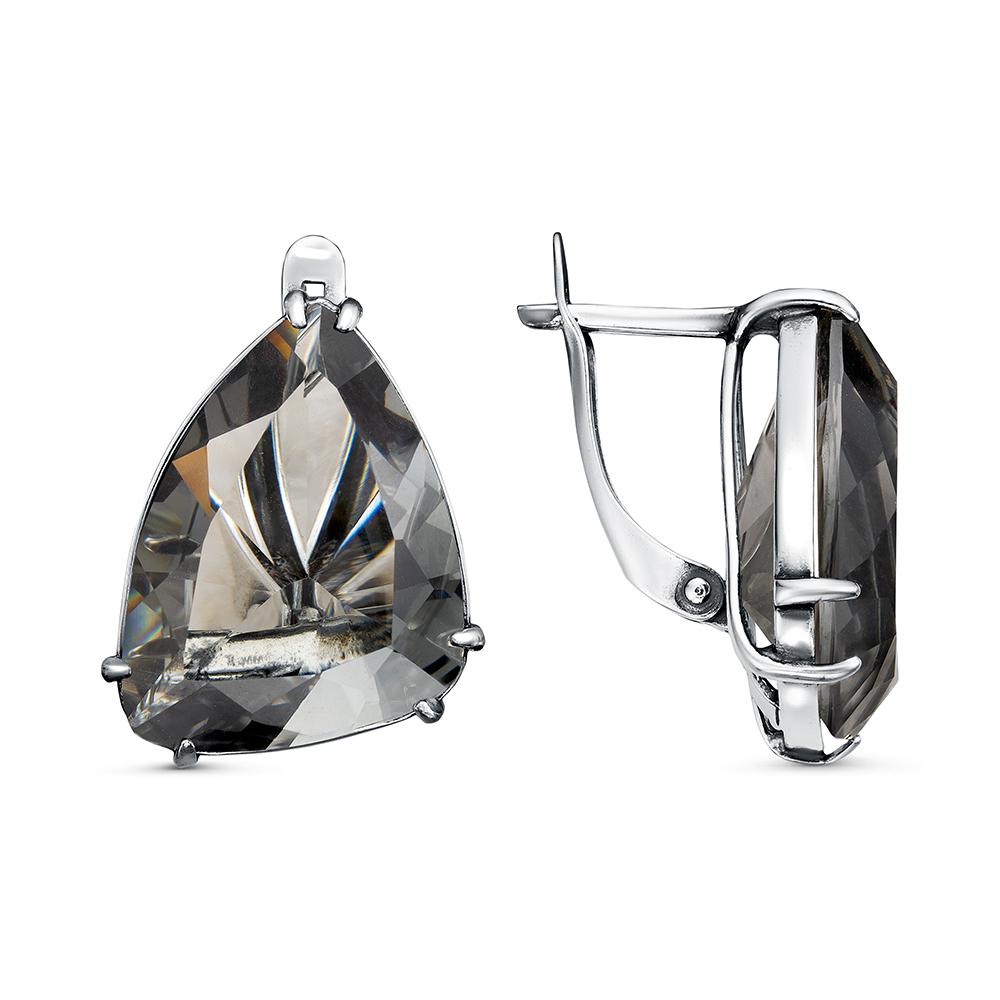 Серьги (925) дымчатый кварц синт.