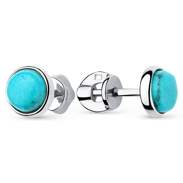 Серьги пусеты из серебра 925 пробы с искусственной бирюзой