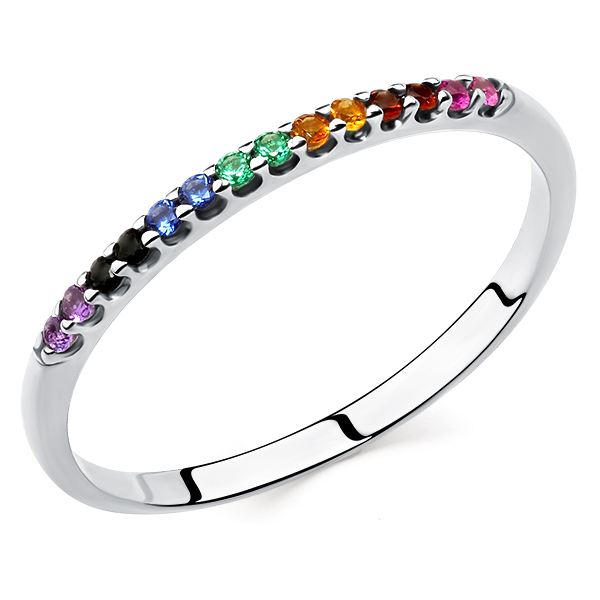 Кольцо из серебра 925 пробы с цветными фианитами