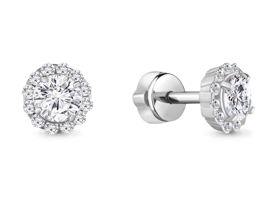 Серьги пусеты из серебра 925 пробы с фианитами