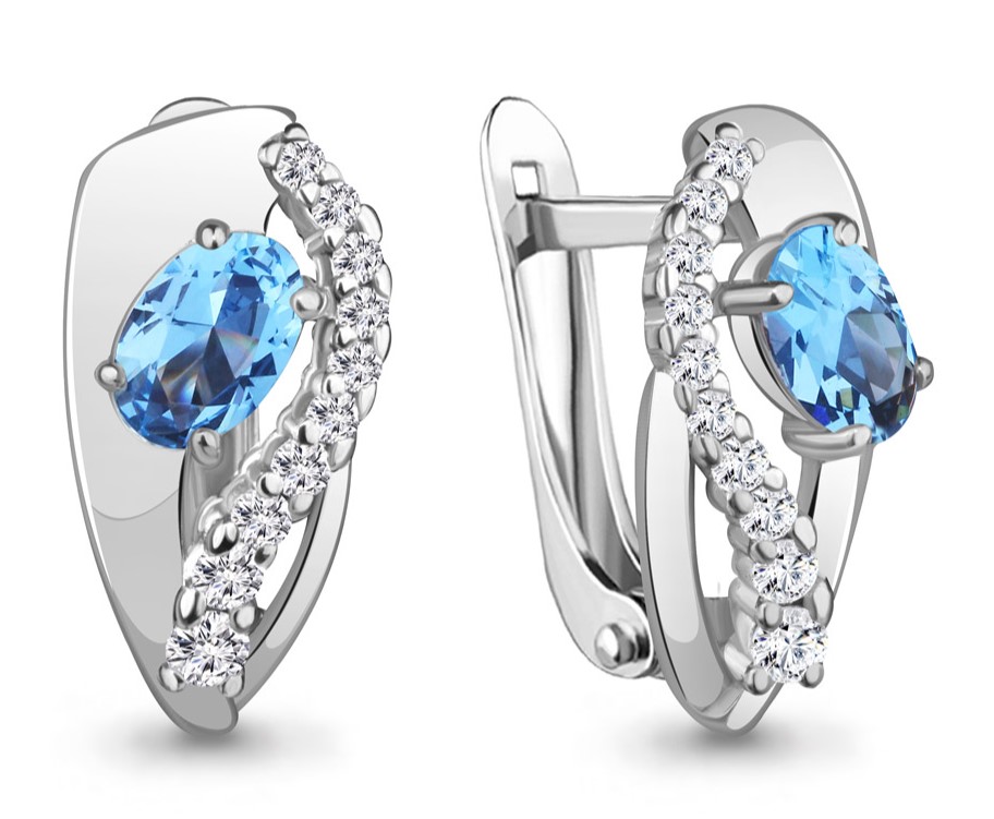 Серьги из серебра 925 пробы с топазами и фианитами