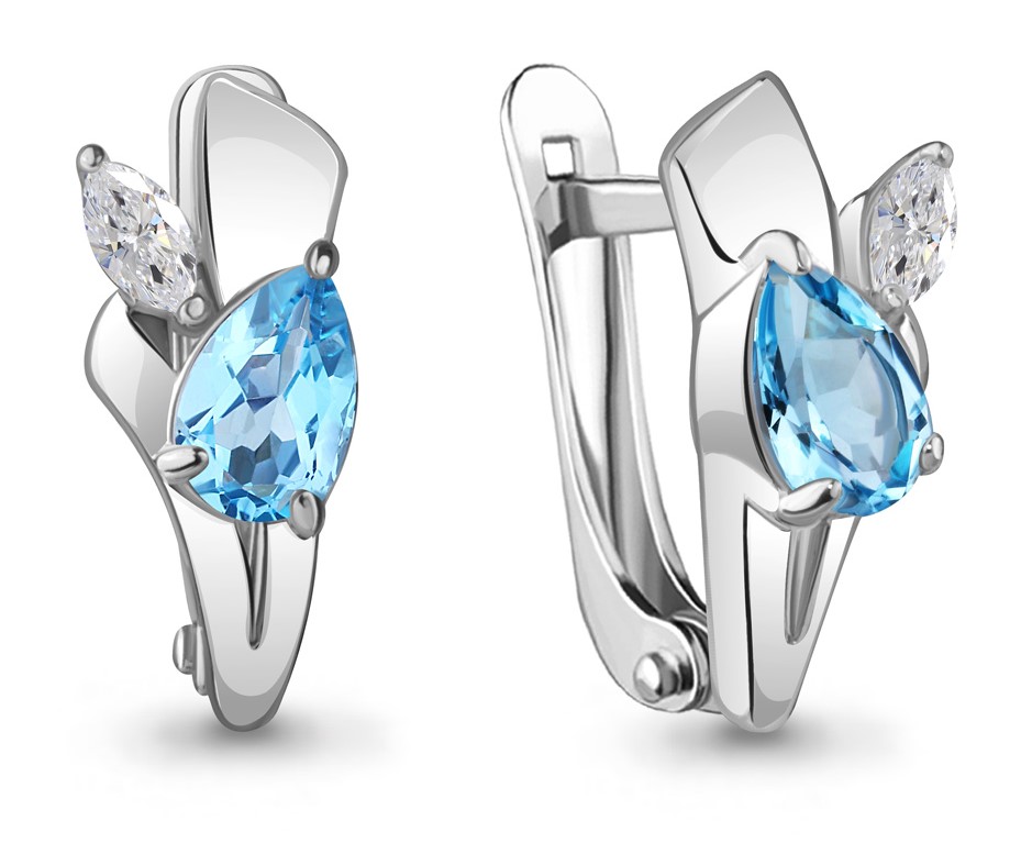 Серьги из серебра 925 пробы с топазами и фианитами