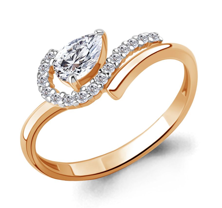 Кольцо из серебра 925 пробы с позолотой, с фианитами